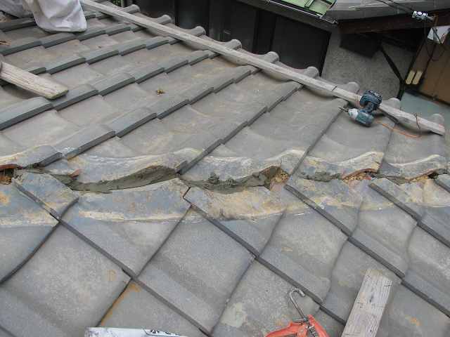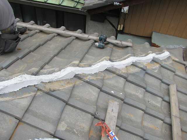 ①三角形の瓦(鱗瓦)を納めなおしました